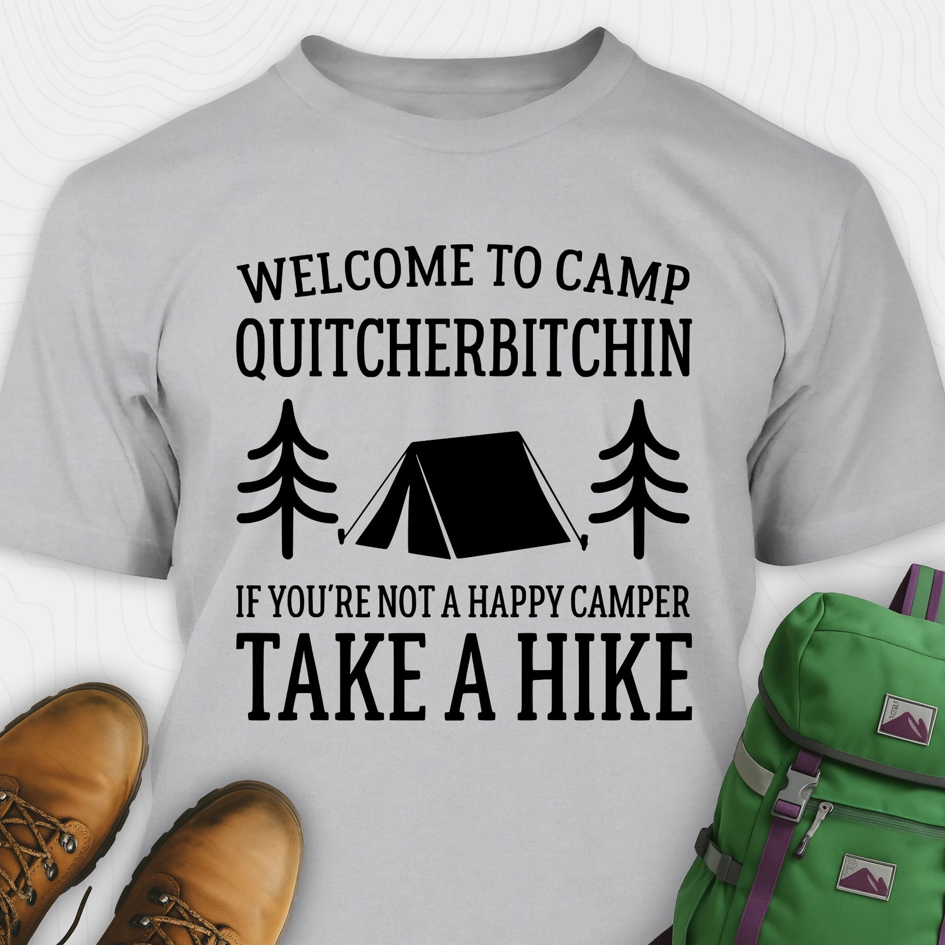 Soft, lightweight, and perfect for campfire nights, this Camp Quit Your Bitchin T-Shirt brings playful outdoor attitude to every trip. Crafted from premium ringspun cotton, it offers effortless comfort with a clean, bold design made for campers who don’t take things too seriously.